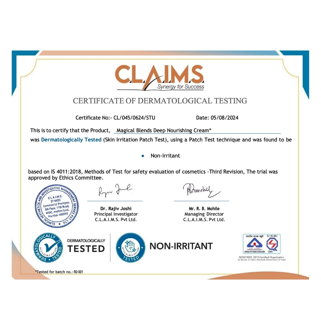 The Magical Blends Deep Nourishing Cream delivers deep hydration and nourishment to the skin, helping to restore and maintain its natural moisture balance. It aims to soften and soothe dry, rough, or irritated skin, providing immediate relief and long-lasting comfort. It serves as a versatile cream base that makes customising easy along with the serums. Versatile and customizable, it can be adapted to target specific skin concerns, making it a reliable foundation for healthy, nourished skin.
