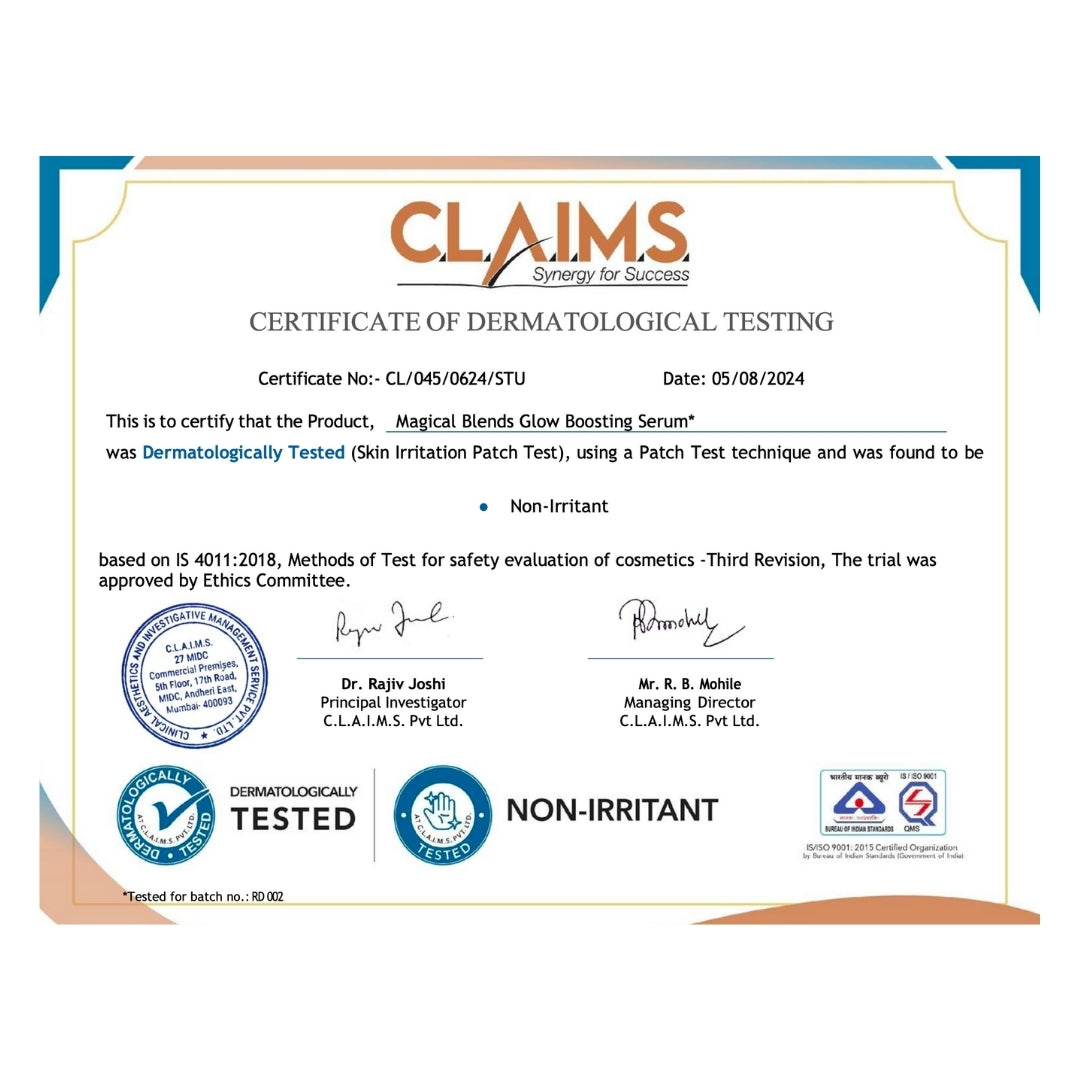 Usage - Add just 3-4 drops of Magical Blends Glow Boosting Serum with the base of your choice - cream or gel. Add your desired Magical Blends serums to this and mix evenly to create your custom blend. Apply the mixture evenly to your face and neck.